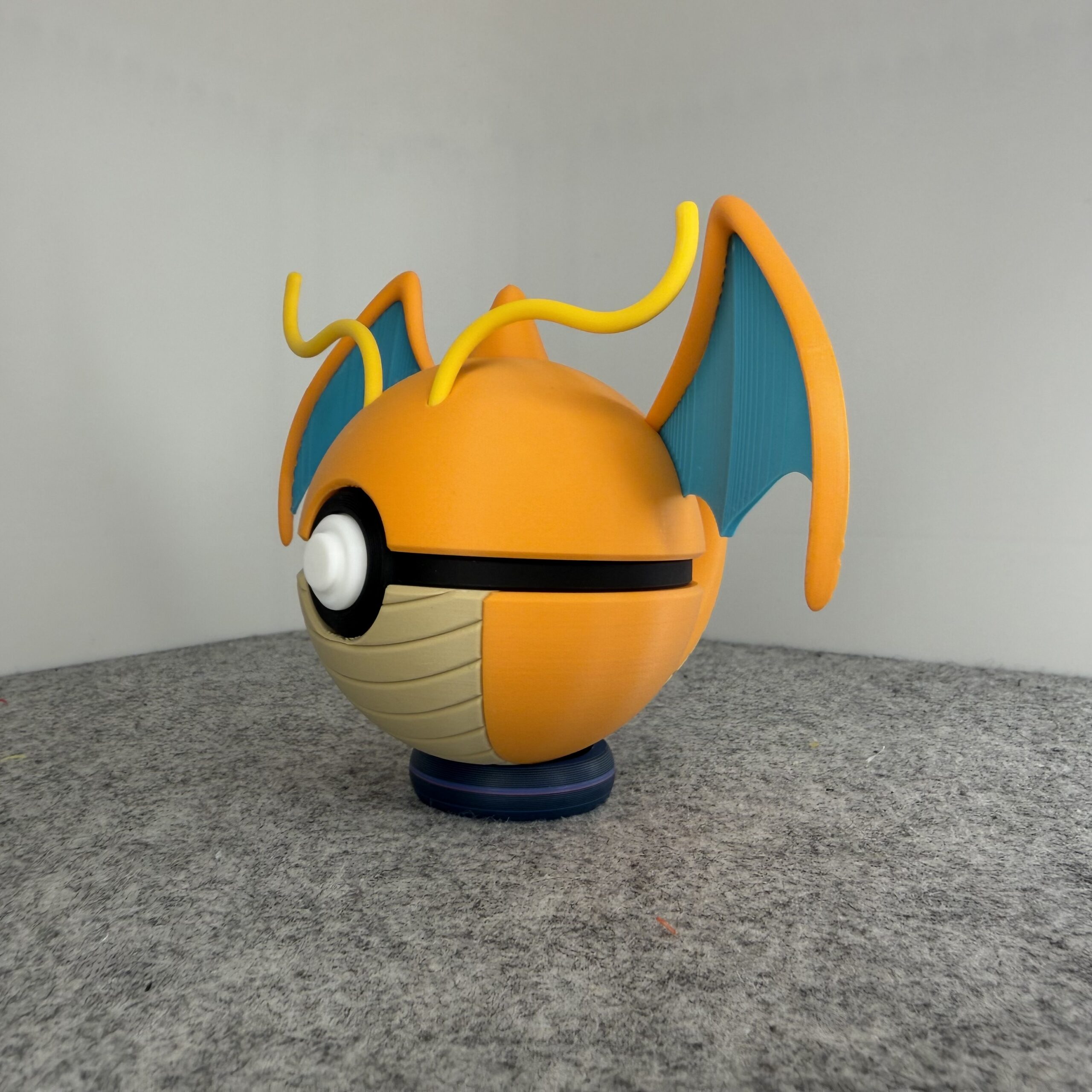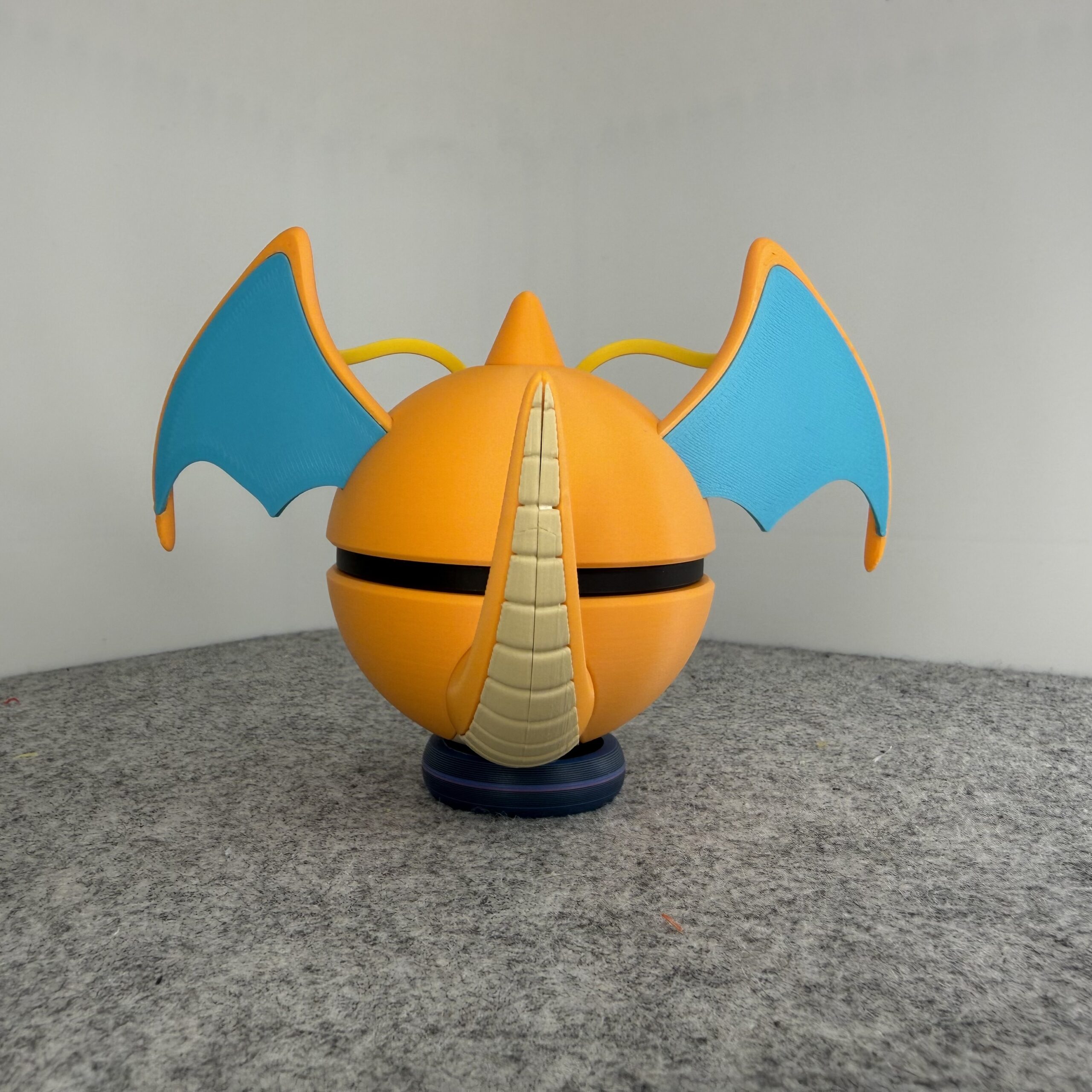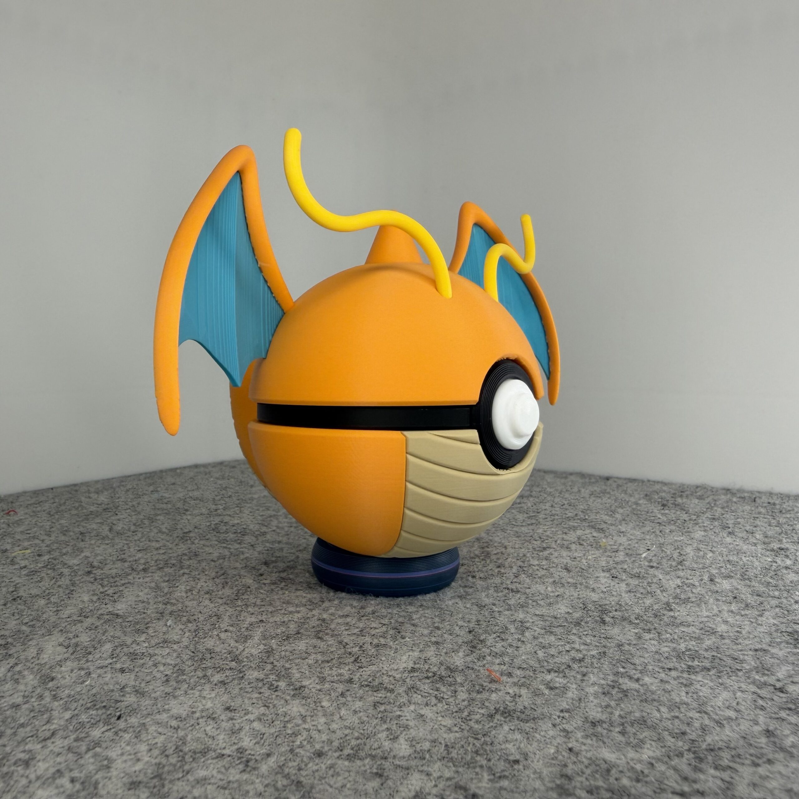 Take flight with this Dragonite-inspired Monster Ball! This Dragon/Flying-type design captures Dragonite’s warm, friendly personality with a vibrant orange and desert tan color palette. Known for its kind heart and incredible speed, Dragonite makes for a truly charming collectible.